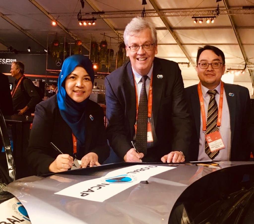 Eindhoven, The Netherlands, 12 June 2019 – The Malaysian Institute of Road Safety Research (MIROS) yesterday signed the annual grant agreement with Global New Car Assessment Programme (Global NCAP) for the project of New Car Assessment Program for Southeast Asian Countries (ASEAN NCAP). The signing ceremony was held in Eindhoven, the Netherlands in conjunction with the 26th International Technical Conference on the Enhanced Safety of Vehicles (ESV2019). Mr. David Ward, President and CEO signed on behalf of Global NCAP whilst MIROS was represented by its Director-General, Dr. Siti Zaharah Ishak, who is also the Chairperson of ASEAN NCAP.