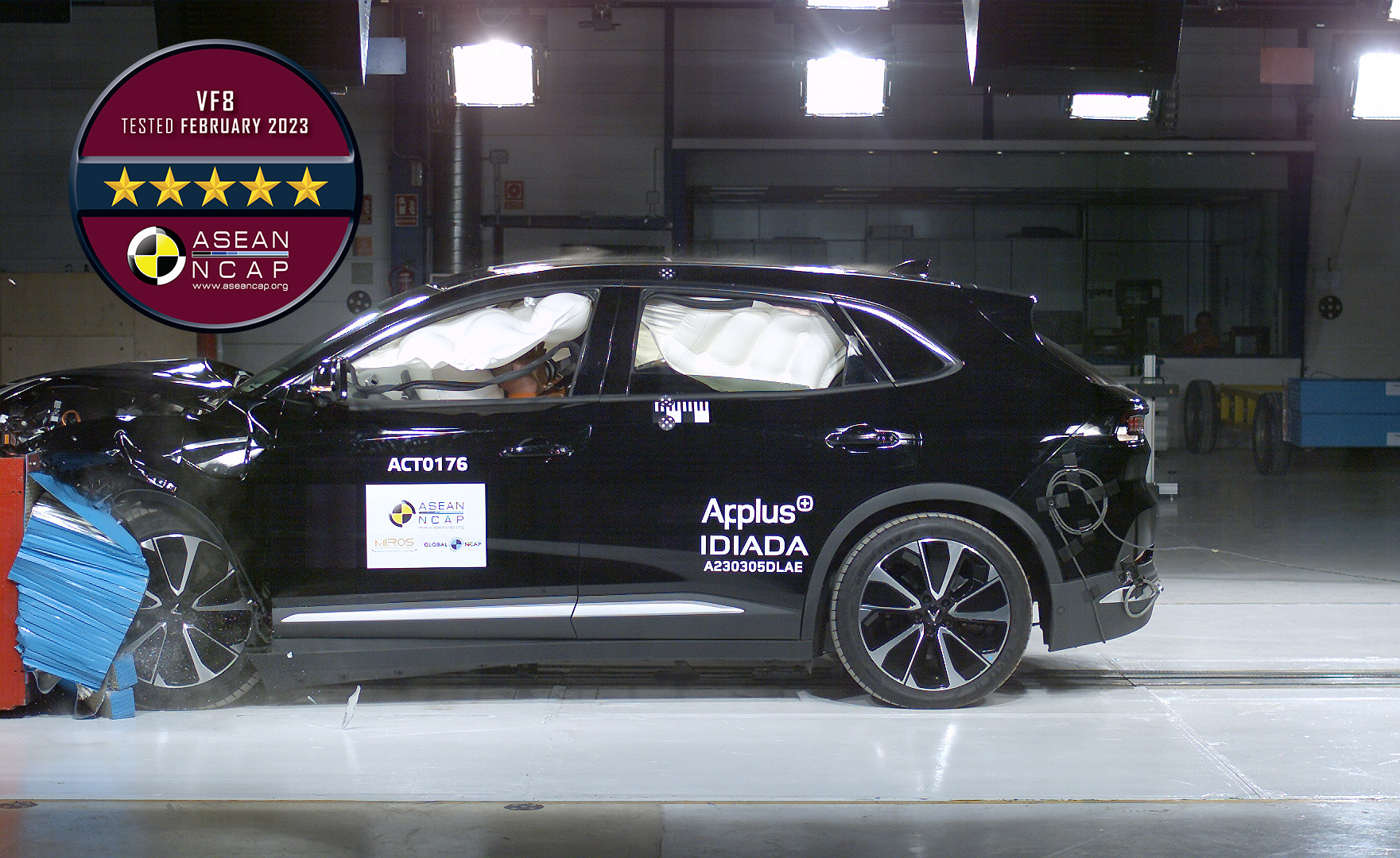 Kajang, Malaysia, 21 March 2023 – The New Car Assessment Program for Southeast Asian Countries (ASEAN NCAP) recently tested the second electric vehicle under the VinFast brand. The VF8 model made an incredible performance in the assessment by achieving 5-Star ASEAN NCAP rating with an overall score of 89.50 points. From this score, the SUV received 36.07 points for the Adult Occupant Protection (AOP) category, 18.43 points for Child Occupant Protection (COP), 20.00 points for the Safety Assist (SA) category and 15.00 points for Motorcyclist Safety (MS).